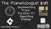 - October 17, 2022 by jameschappfillmore@gmail.com1#2D, #Atmospheric, #Dark, #GameMaker, #Indie, #Pixel Art, #Sci-fi, #Shoot 'Em Up, #Top-DownIn this Update i import the sprites of diferente enemys and work in some primitive AI. The Planetologist is a top down shooter game in which you are a scientist who has to travel with your spaceship t... Continue reading